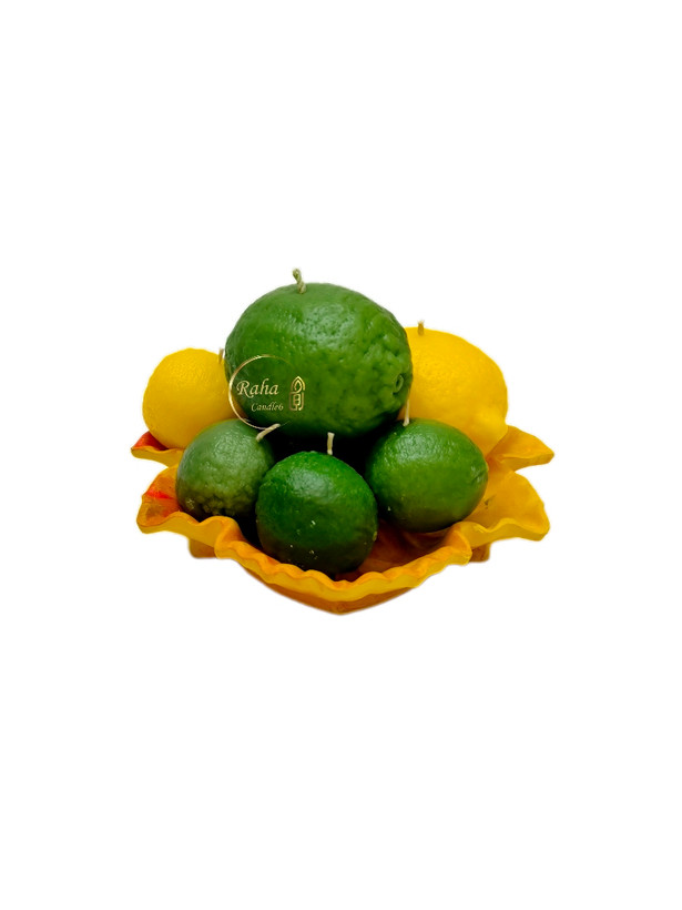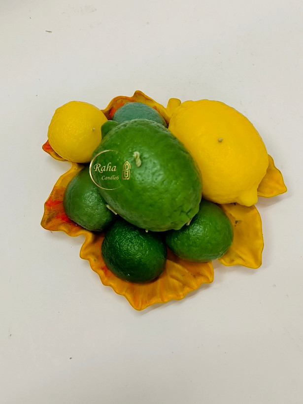 رنگ سبز و زرد لیموها در ظرف طرح برگ پاییزی، باعث ایجاد تعادل بین انرژی، آرامش و زیبایی بصری میشود.