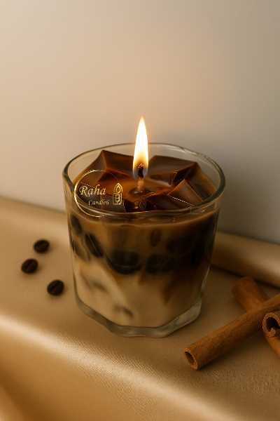 شمع شاتی رها کندل۶، مدل آیس لاته، لیوان دفرمه رها مال، تخفیف تا بلک فرایدی