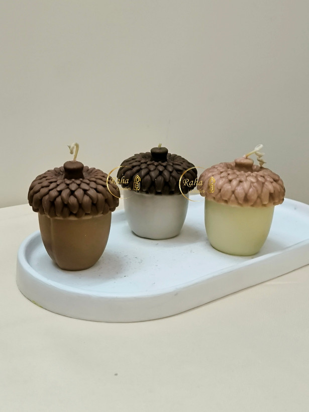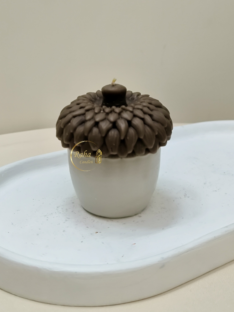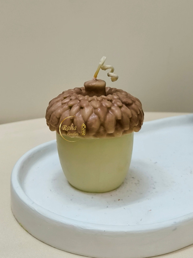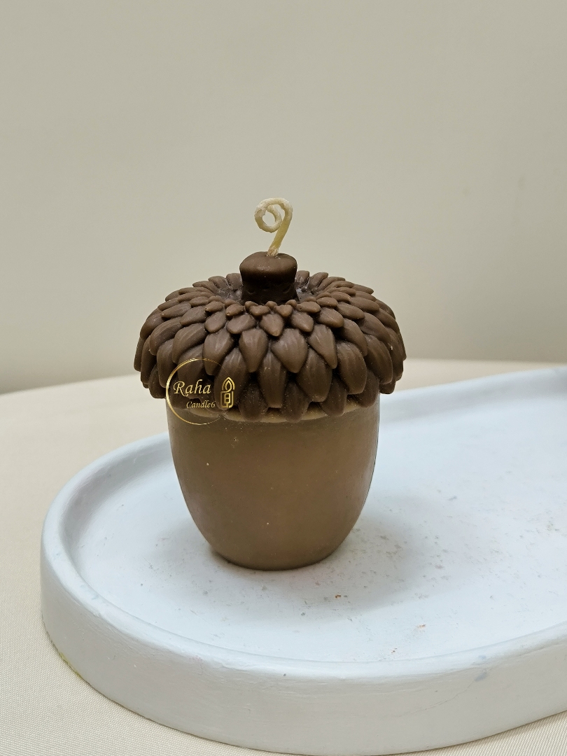 شمع بلوط با جزئیات طبیعی و طراحی فانتزی ساخته شده و جلوهای جذاب و مدرن به دکور خانه میبخشد.