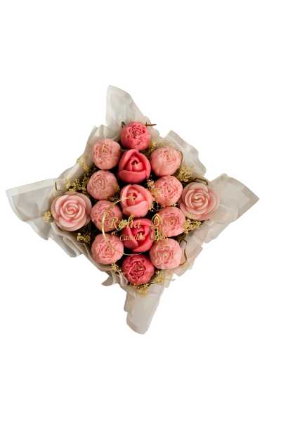 باکس گل شمع پیونی رها کندل۶، مدل نارا، باکس سفید رومیزی رها مال