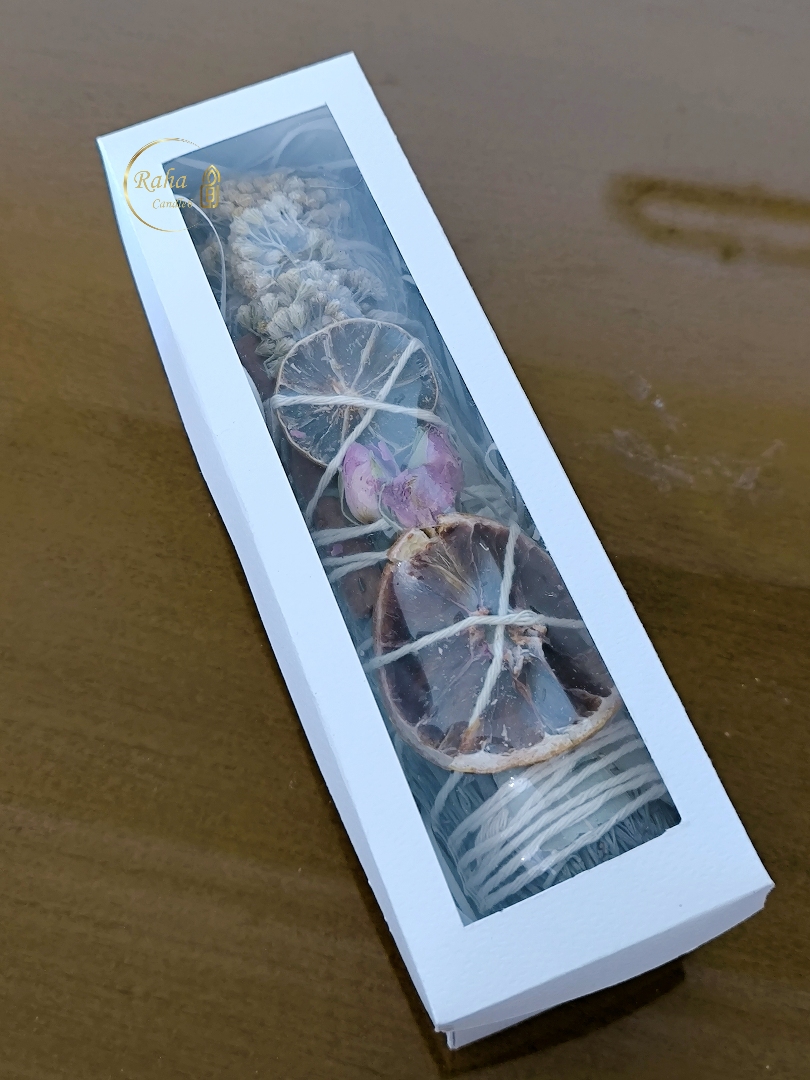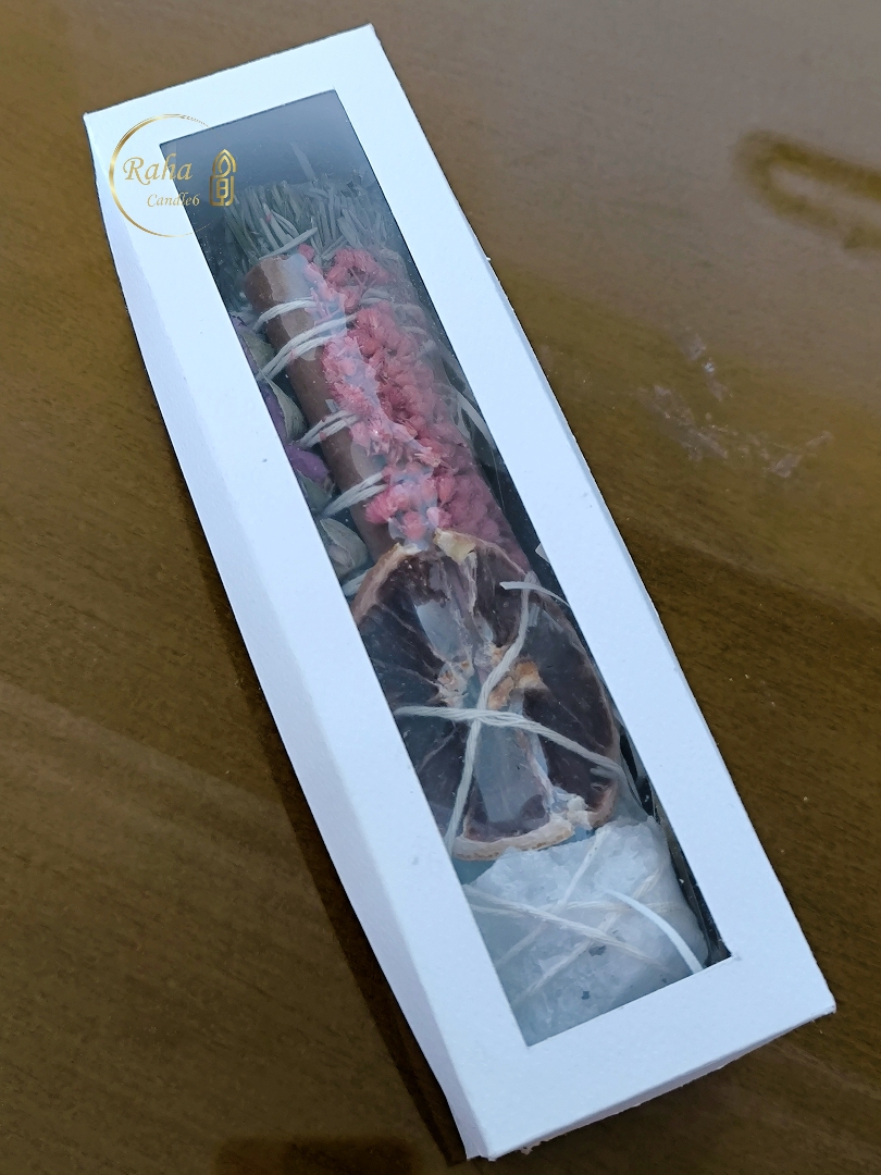 تمام گیاهان استفاده شده از نوع مرغوب و تازه هستند. وجود رزماری و گل محمدی رایحهای لطیف ایجاد میکند، در حالی که دارچین گرمای خاصی به فضا میدهد. حلقه پرتقال خشک نیز علاوه بر زیبایی بصری، عطر ملایمی اضافه میکند.